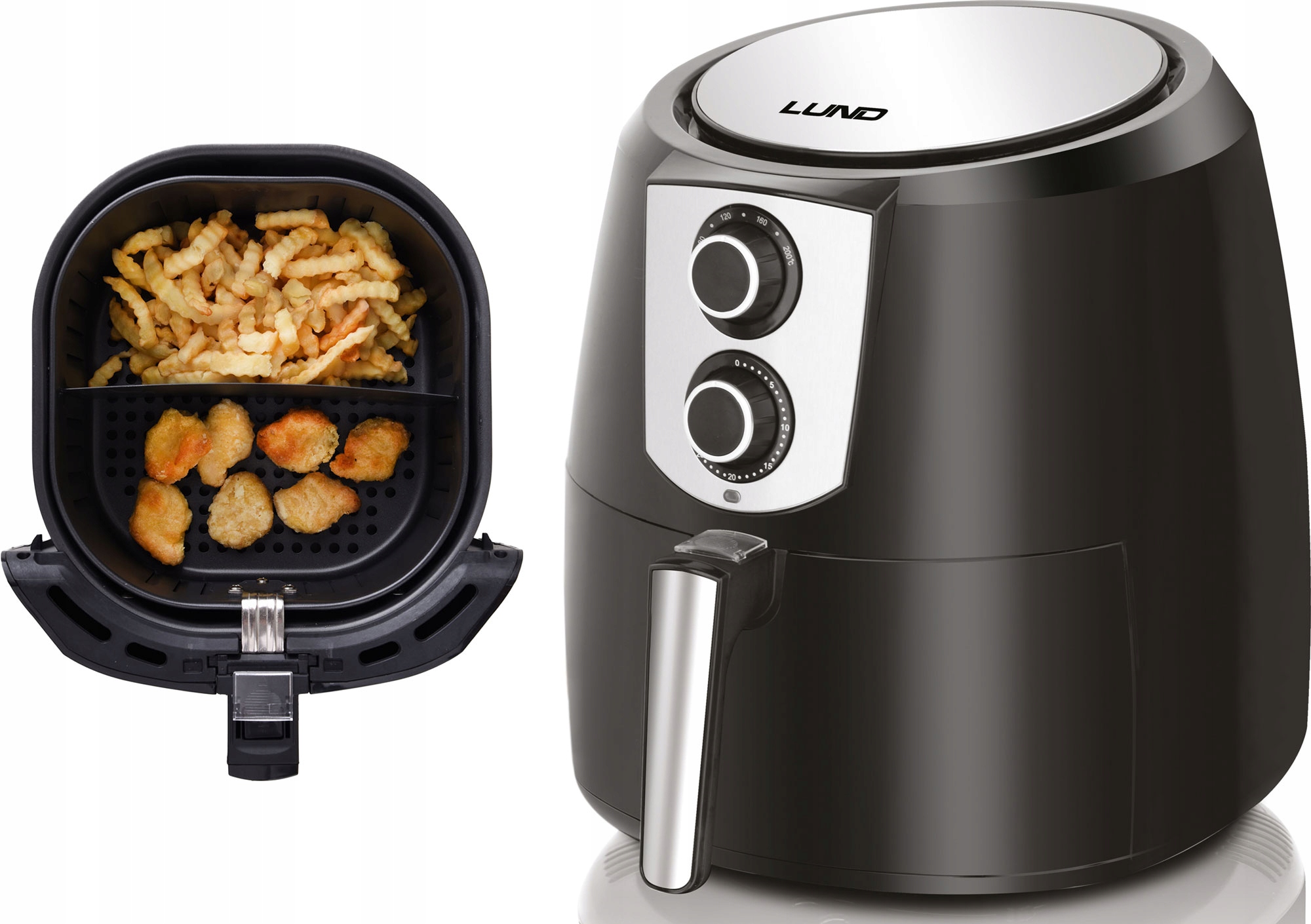 Контурная форма фритюрницы и циркуляция воздуха обеспечивают равномерную прожарку продуктов, делая их хрустящими снаружи и нежными внутри.