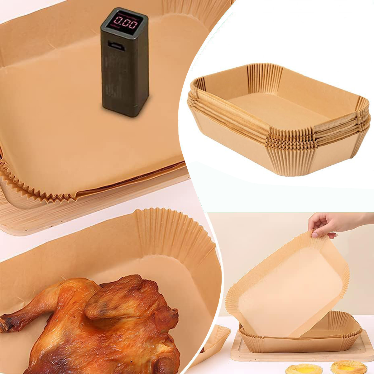 - Прямоугольная выпечка для фри из воздуха изготовлена из естественной целлюлозы и безопасное покрытие для пищи, полностью не -дискритизирующей, не -токсичной, BPA, не -токсичной, водонепроницаемой, водонепроницаемой, устойчивой и не -вещей.