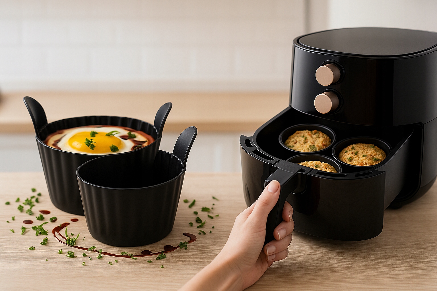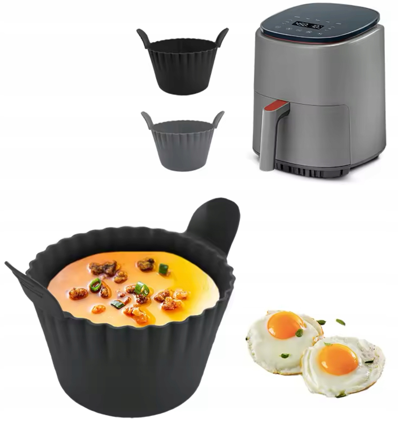 Термостойкая силиконовая форма для аэрофритюрницы, набор из 3 штук, изготовлена из высокопрочного силикона. Гибкий материал, 100% безопасный для здоровья, чрезвычайно прочный.