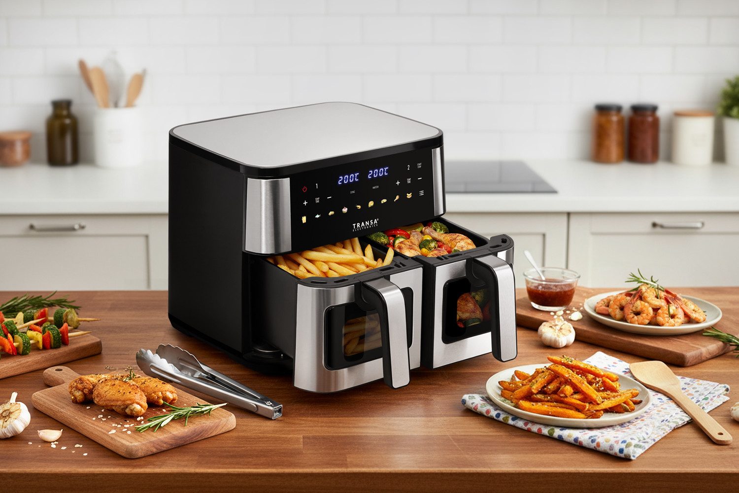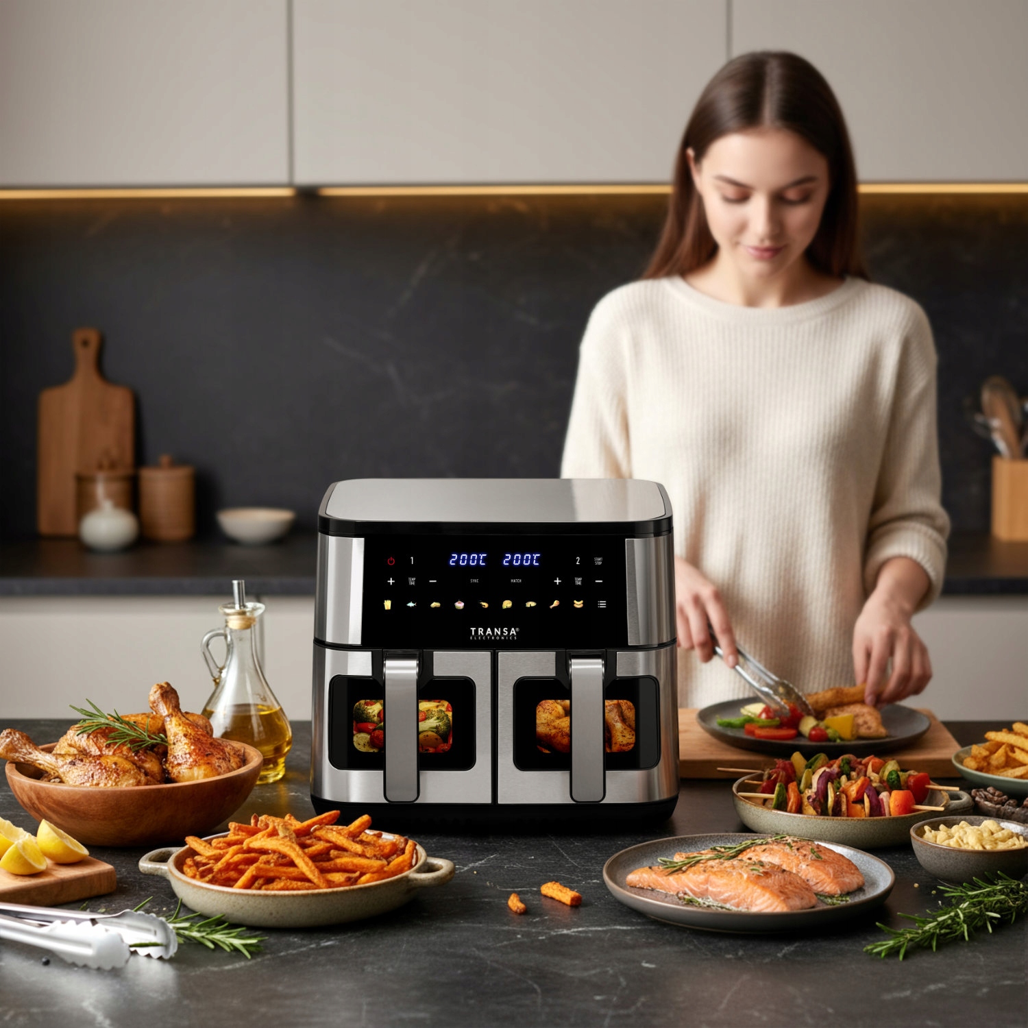 ✅ ДВА НЕЗАВИСИМЫХ ОТДЕЛЕНИЯ ОБЪЕМОМ 4,5 Л - готовьте два разных блюда одновременно, напр. картофель фри и курица, без смешивания запахов и вкусов.