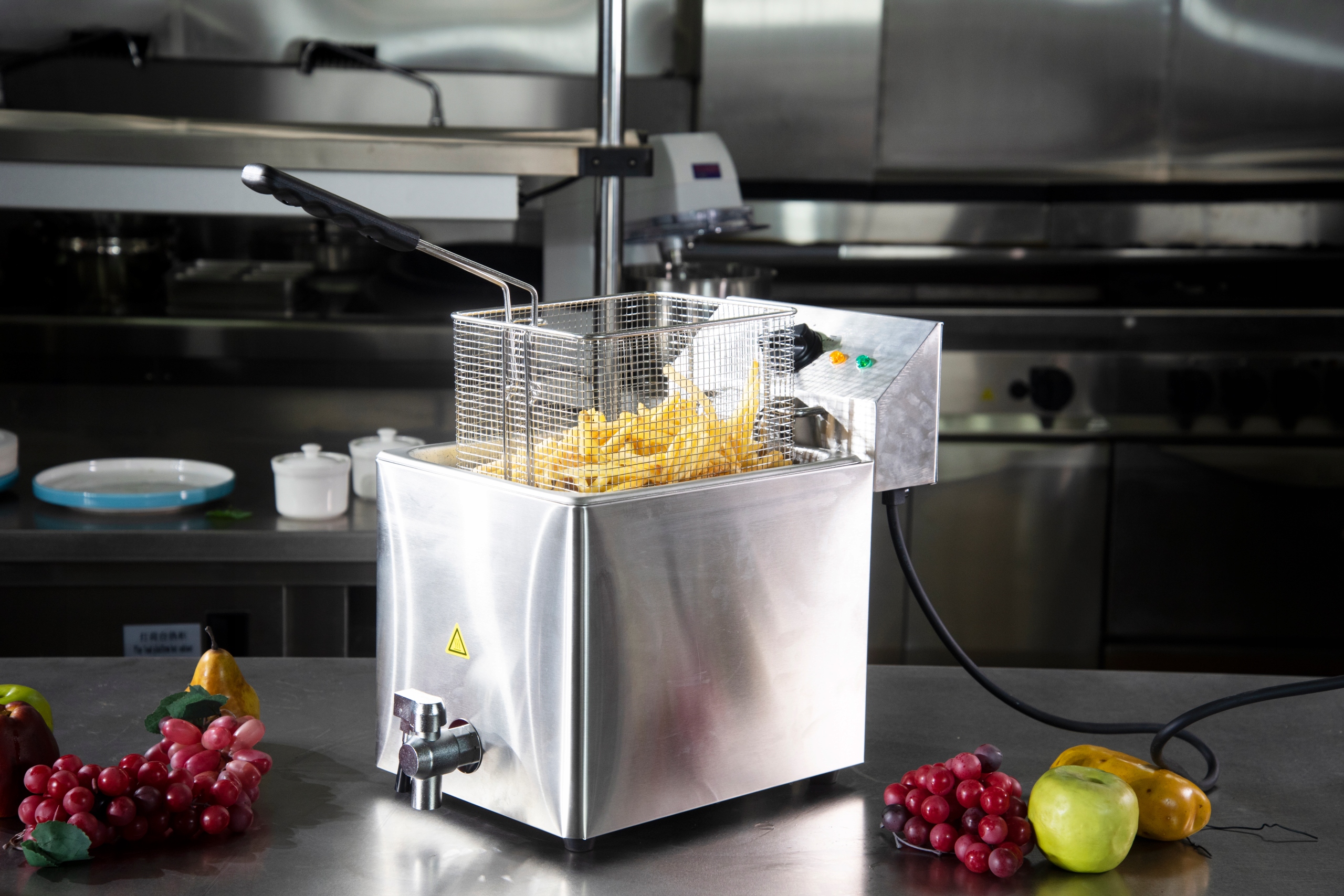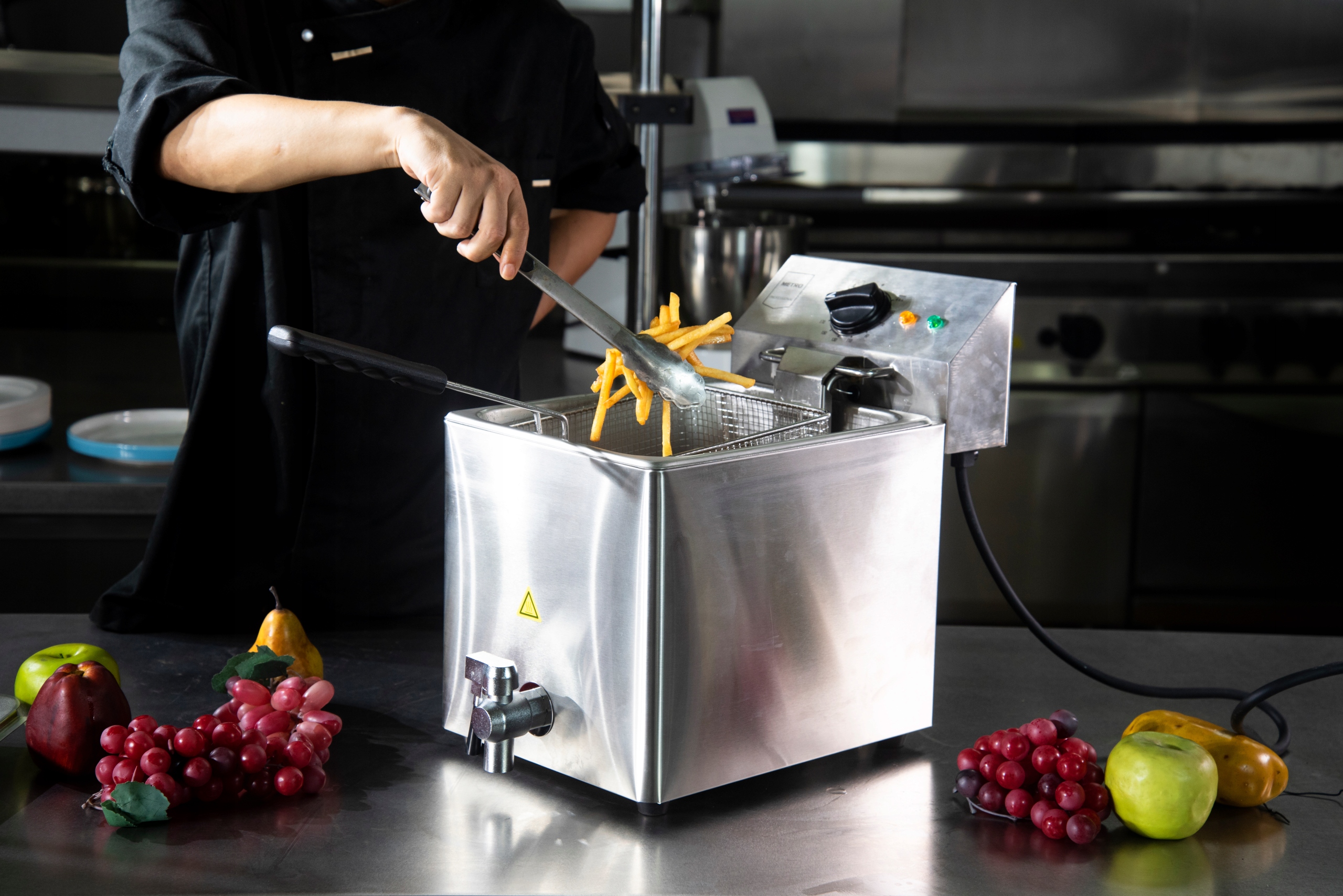 Профессиональная фритюрница Metro Professional GDF3008 — надежное устройство для гастрономии — ресторанов, баров быстрого питания, фудтраков и кейтеринга. Прочная конструкция из нержавеющей стали, высокая мощность 3250 Вт и емкость бака 8 л делают приготовление картофеля фри и других жареных блюд быстрым, эффективным и безопасным