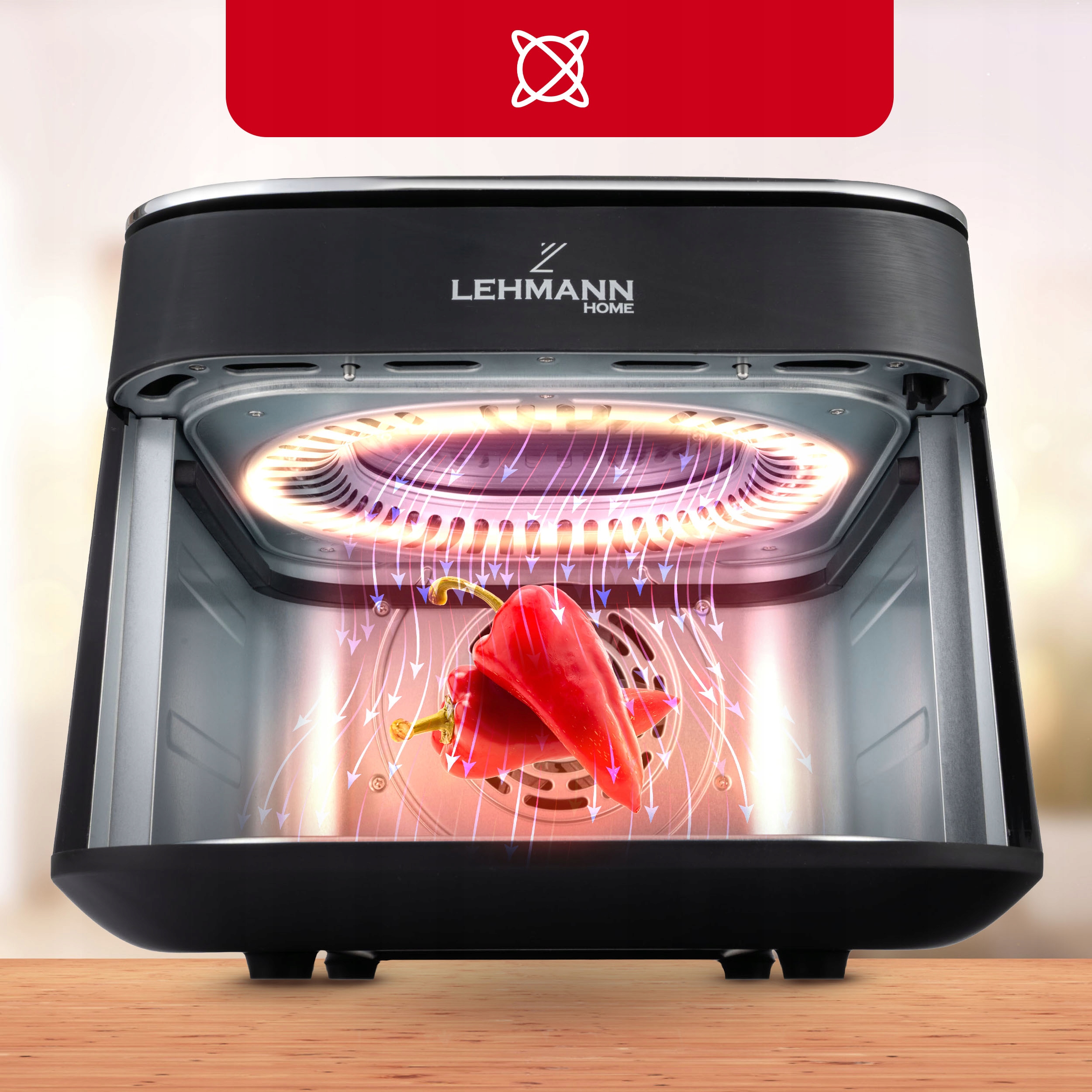 Специально разработанный нагреватель распределяет тепло по стенкам, а технология циклон распределяет тепло равномерно по всей камере. Блюда пропекаются со всех сторон, хрустящие снаружи и мягкие внутри, без использования масла.