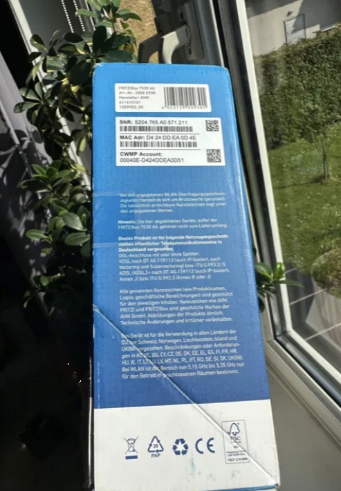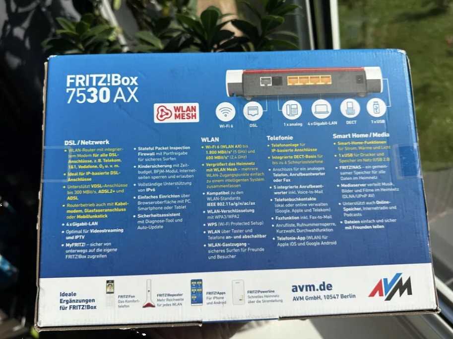 Здравствуйте. Продаю маршрутизатор FRITZ!Box 7530 AX DSL Wi-Fi 6 1800 Мбит/с белого цвета.