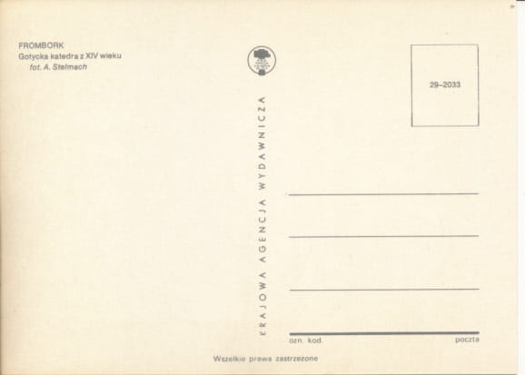 Оплачивая «Frombork - 011436» данное изделие из «Вармия и Мазуры (Ostpreussen)» вы можете быть уверены, что после оформления заказа, доставки в Украину, вы получите именно то, что заказывали, в оговоренные сроки и европейского качества.