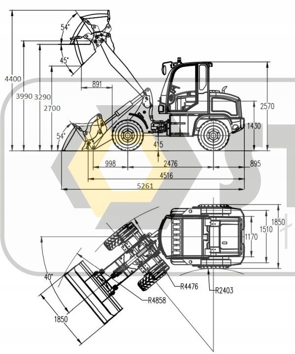 - Длина - 5261 мм x Ширина - 1850 мм x высота - 2570 мм