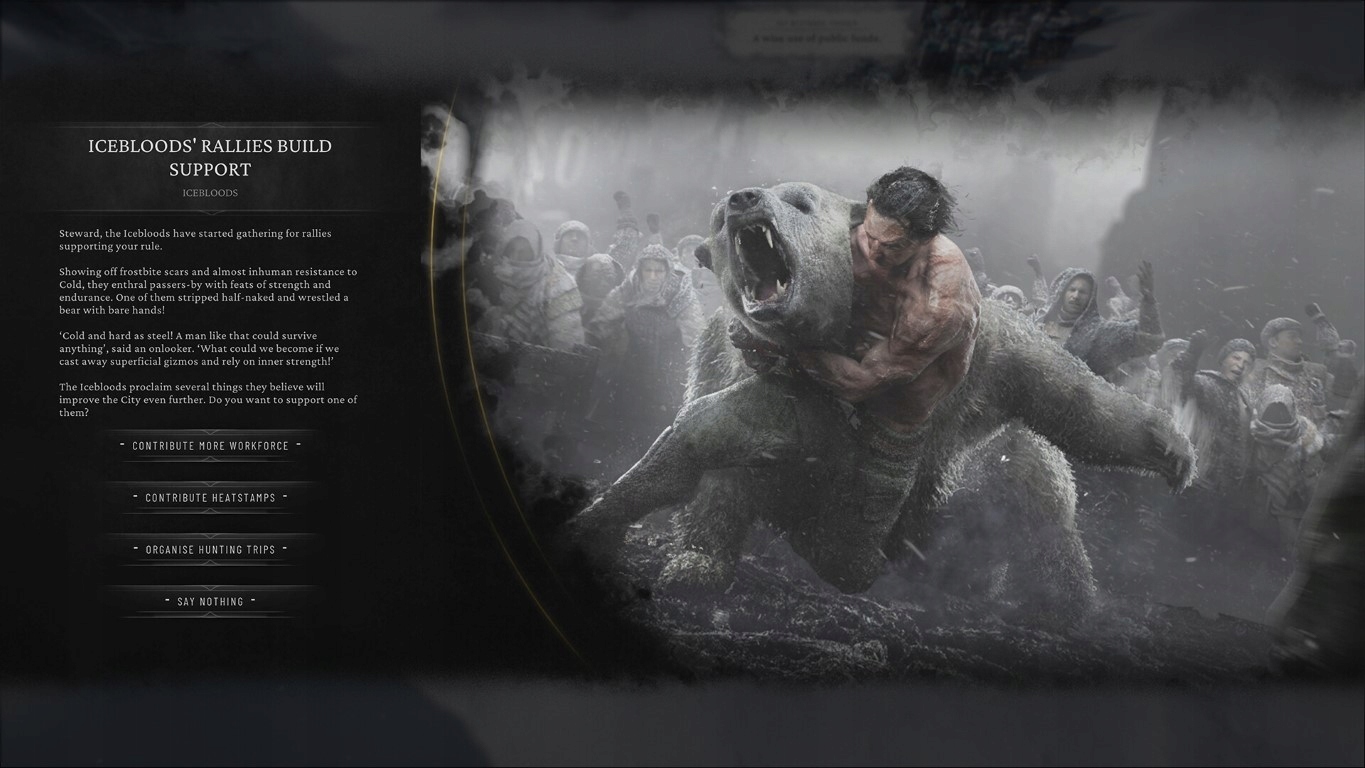В Frostpunk 2 вам предстоит столкнуться не только с бесконечной зимой, но и с фракциями, которые следят за каждым вашим шагом из здания Ратуши.