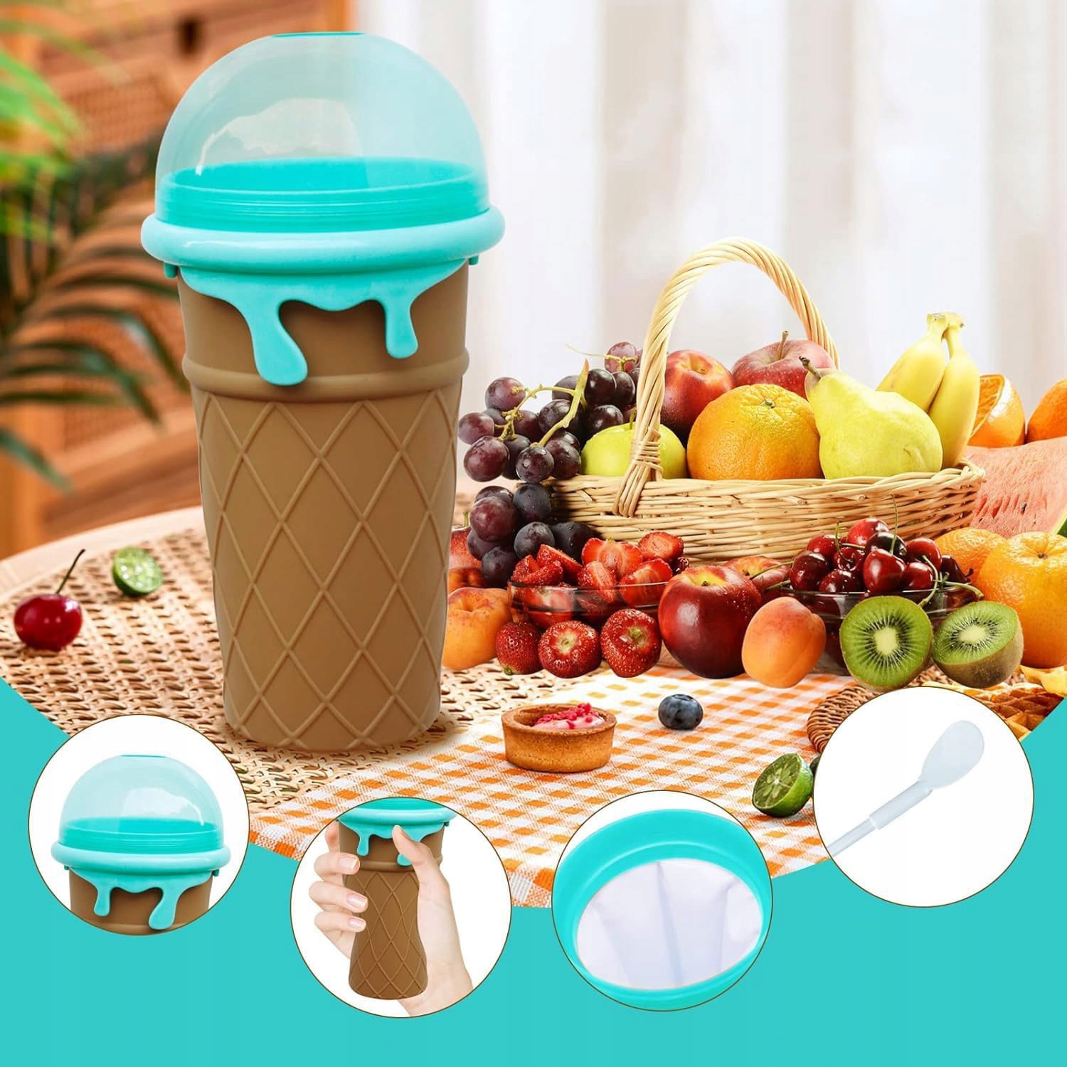 FROZEN SQUEEZE CUP Z SILIKONU, KUBEK DO SMOOTHIE, ZE SŁOMKĄ I ŁYŻKĄ 2 W 1