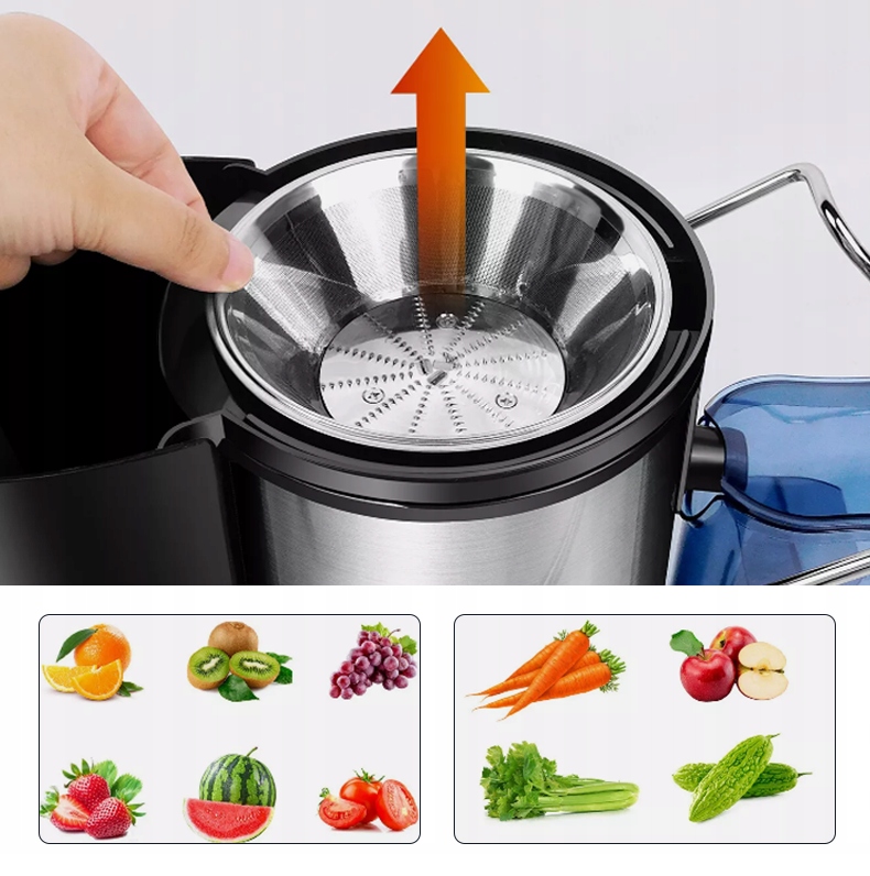 -💡wyposaony w mocny silnik o mocy 1000 w, może szybko i wydajnie wyciskać świeży sok w ciągu kilku sekund. pozwalające wybrać odpowiednią prędkoś w zależności od miękkości składników, ⅰ niska prędkość jest odpowiednia do miękkich owoców, такич, Jak pomararńcze, что -то, что жестко, так же, как жесткие, такие, как жесткие, такие, как жесткие, такие как жесткие, такие как жесткие, такие как жесткие, такие как жесткие, такие Яблоки, сельдерей, морковь и т. Д. Благодаря внешнему контейнеру для мякоти, он позволяет напрямую сжимать сок без удаления мякоти.