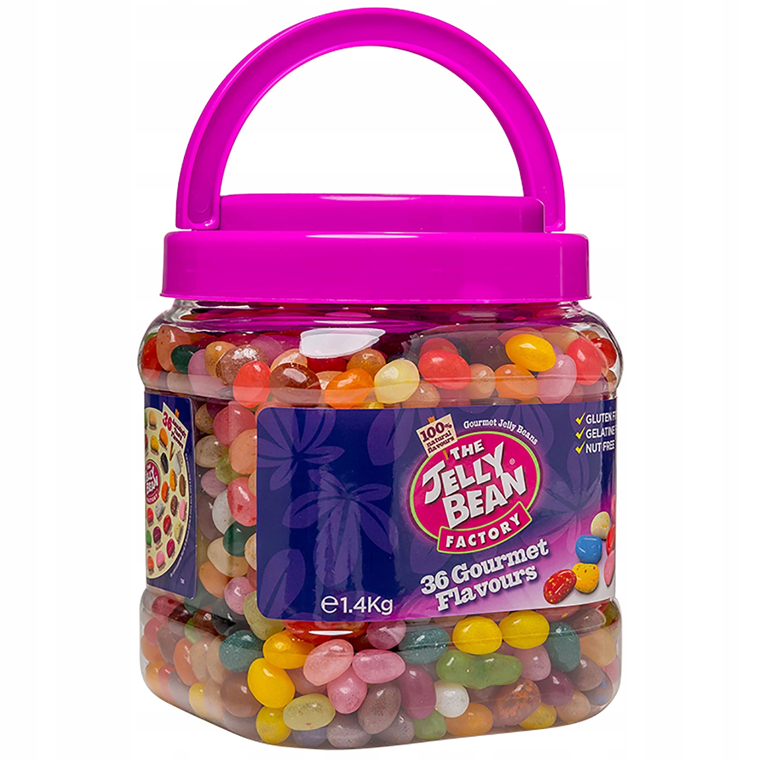 ✅Благодаря огромной банке The Jelly Bean Factory 36 Gourmet Flavors разнообразие сладостей не знает границ. Большой пластиковый контейнер легко закрыть и имеет практичную ручку для переноски. В этом гигантском миксе вас ждут 36 различных сортов. Позвольте себе удивиться.