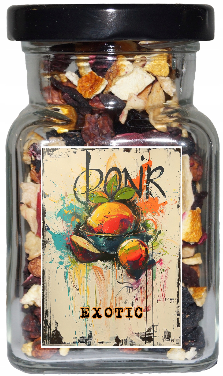 Экзотический 50 г - Композиция: фрукты Роуэн, фрукты дроссельника, яблочные фрукты, апельсиновая кожура, фрукты черной смородины, лепесток гибискуса, ананасовый посадка с тростником, аромат