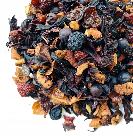 Настоящая и уникальная фруктовая лесная смесь. Бордовый цвет чая отчасти раскрывается его составом: сушеный шиповник, кусочки яблока, цветок гибискуса, сушеная бузина, рябина и арония, изюм и сублимированные* крупные кусочки лесной ежевики и черной смородины . Идеально подходит для согрева, богат витамином С, идеален для осенних холодов и зимней хандры.