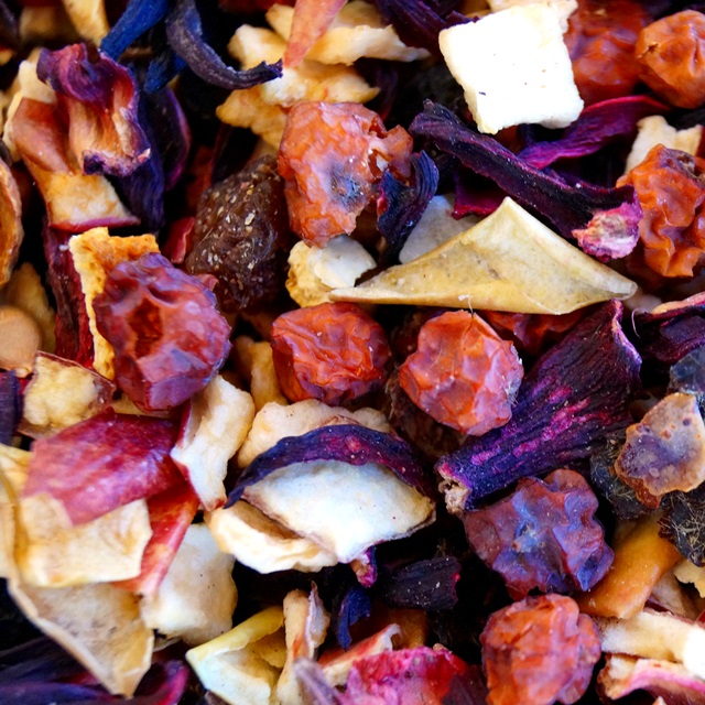 Состав: лепедь гибискуса, яблочные фрукты, фрукты роуэна, кожа дикой розы, апельсиновая кожура, ананас, засахаемый с сахаром тростника, изюм, фрукты аронии, ароматы