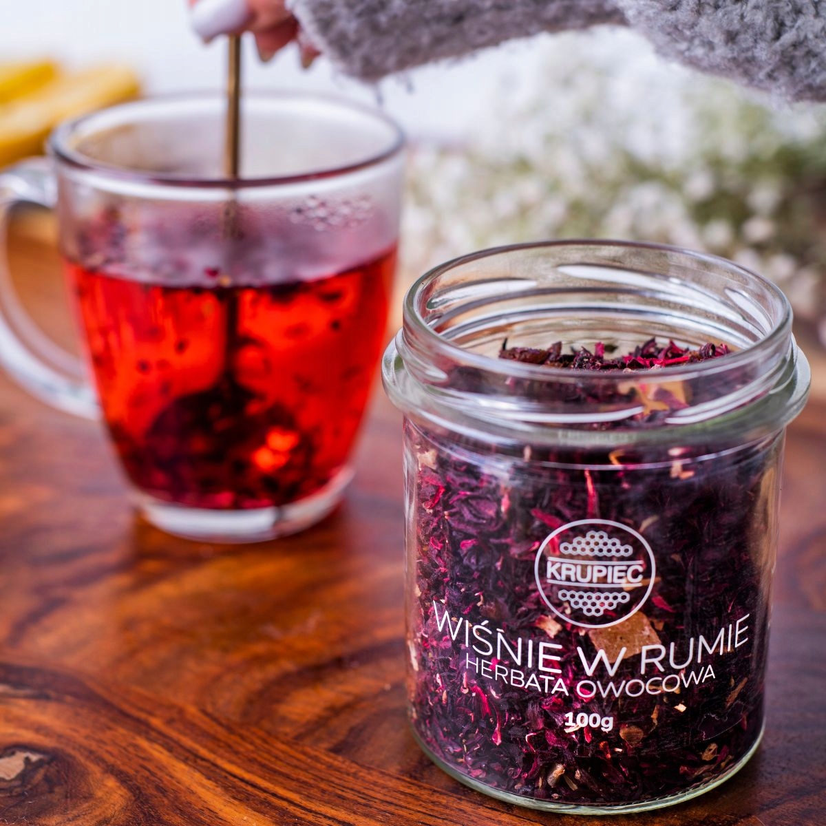 Фруктовый чай «Вишня в роме» — это уникальный купаж, который перенесет вас в мир насыщенных фруктовых вкусов. В этой баночке вы найдете целые ароматные вишни, которые составляют основу этого уникального чая. Добавление засахаренных ананасов придает сладкую нотку, которая идеально сочетается с естественной кислинкой вишни.