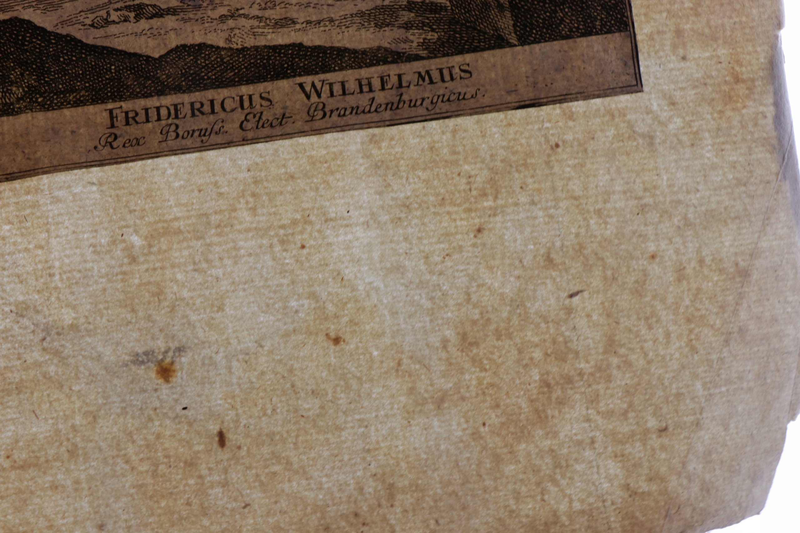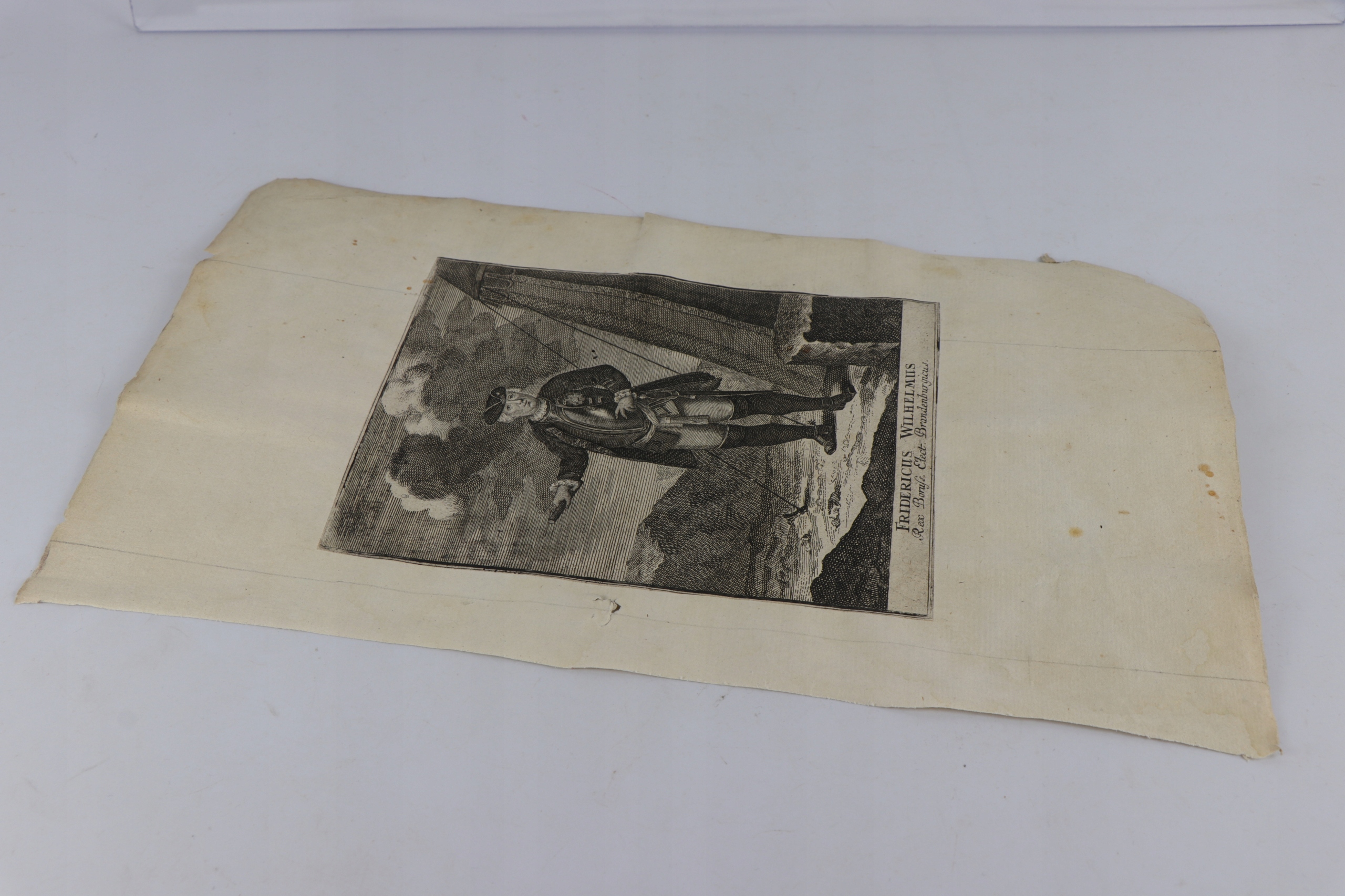 Интересная очень редкая графика меди, изображающая портрет Фрайдерика Вильгельма "Fridericus wilhelmus elec Brandenburgius", вырезанный и застрял на листе старых бумажных ребер.