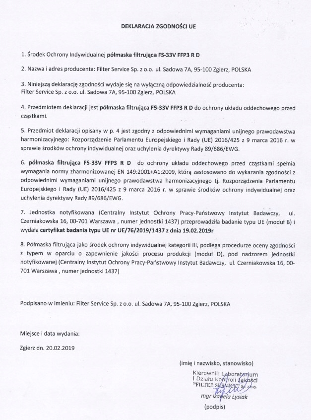 Сертификат: выдан CIOP PIB в соответствии с ЕС 2016/425