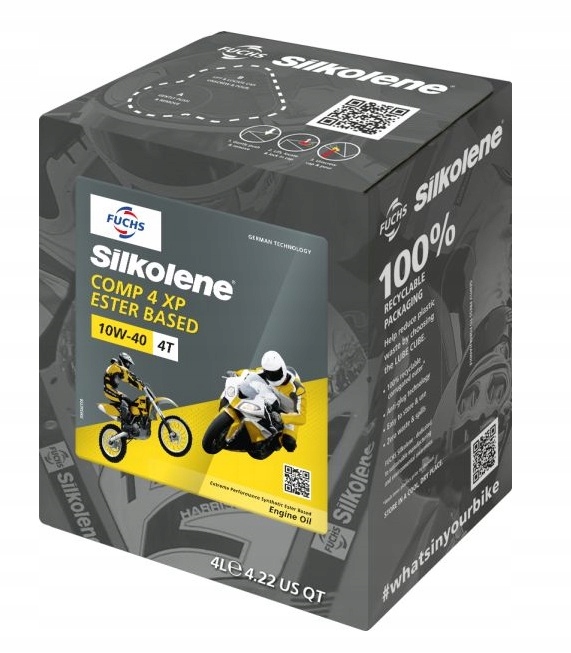 Продукты Silkolene Comp 4 xp были подготовлены для удовлетворения требований четырех двигателей, как жидких, так и воздушных охлаждений, на дороге и за пределами мотоциклов. У них есть классы вязкости, рекомендованные большинством производителей мотоциклов.