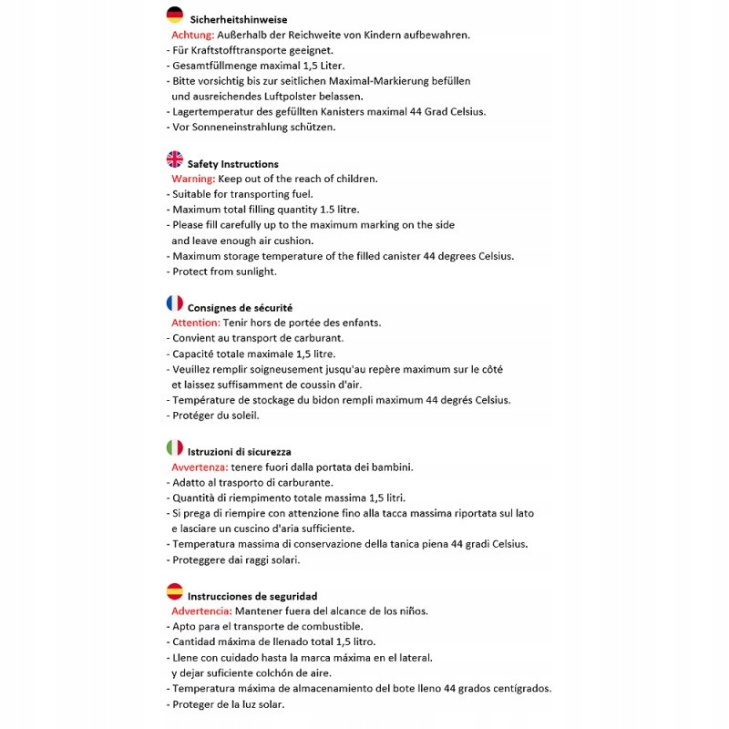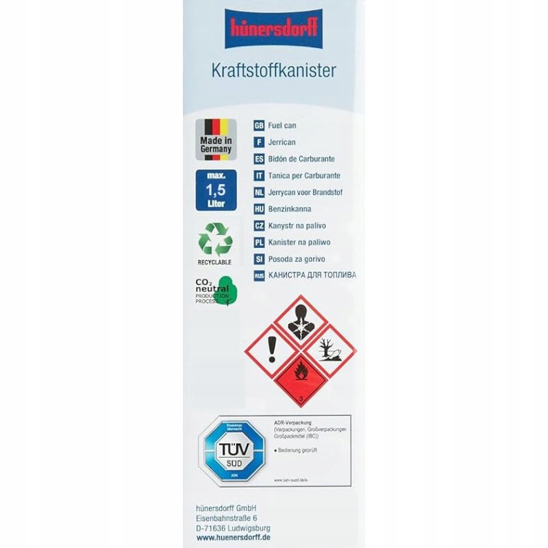 - Fuelfriend 1.5L HDPE с допуском ООН в соответствии с ADR/GGVSEB для транспортировки опасных нагрузок