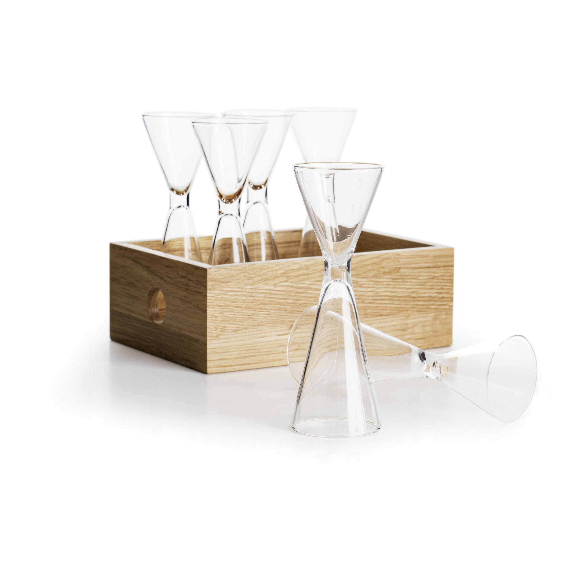 Это набор 6 стеклянных стаканов o двусторонний дизайн - емкость одной чаши составляет 20 мл, а другой - 40 мл.