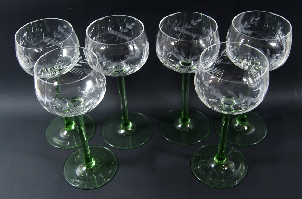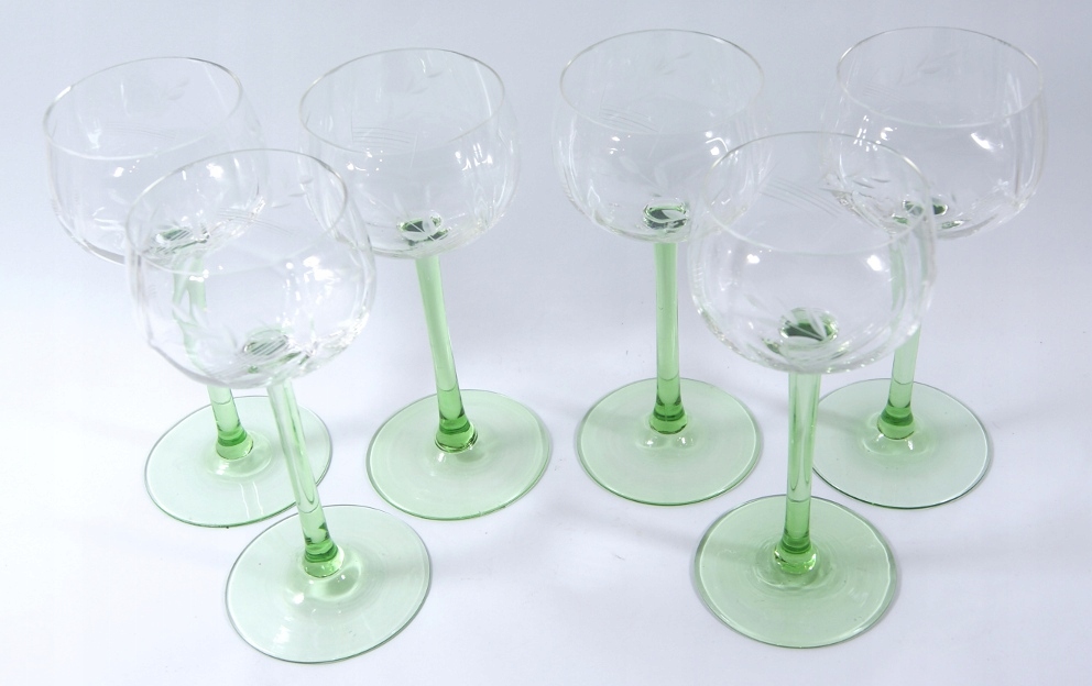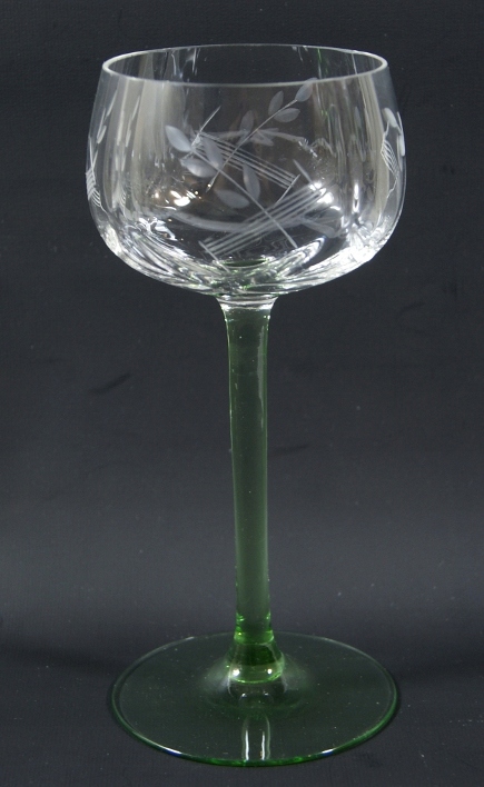БОКАЛЫ ДЛЯ ВИНА CUTE CRYSTAL - огранка, зеленые ножки - набор из 6 шт.