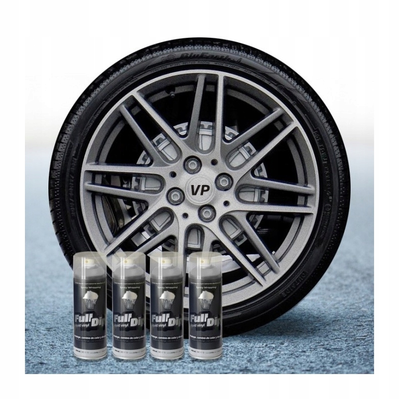 Мы подготовили для вас полный набор по смене цвета дисков на алюминиевый металлик. В 4 баллонах по 400 мл содержится качественная аэрозольная пленка. Для нанесения достаточно тщательно вымыть поверхность и обезжирить. Рекомендуется нанести 6 слоев резины с интервалом 10-15 минут (в зависимости от температуры воздуха). Полное высыхание становится стойким и эластичным уже через 24 часа.