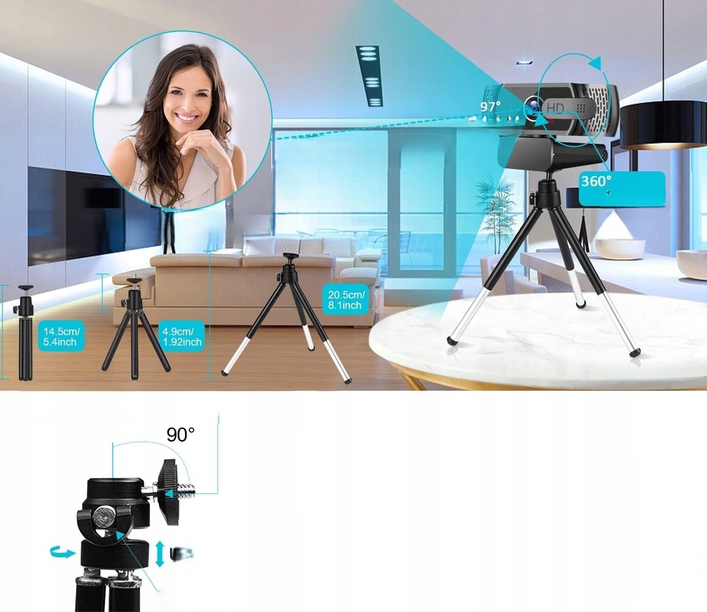 - ✅ Широкий угол 90° - удобный кадр для встреч и вебинаров.