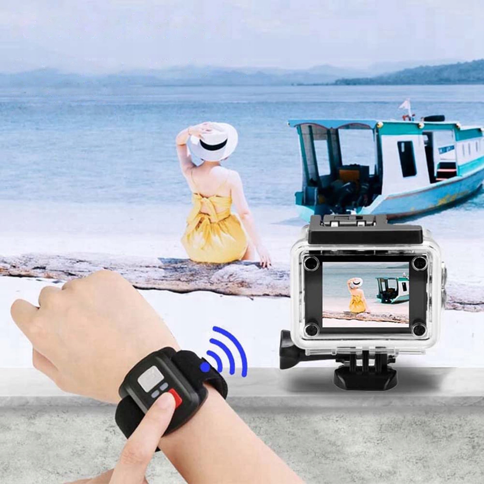 【Камера для шлема с пультом дистанционного управления】 Использование пульта дистанционного управления вы можете гибко переключить камеру на шлем, чтобы сфотографировать или записывать фильмы. Прикрепите камеру к шлему и прикрепите пульт дистанционного управления, установленную к плечу с помощью ремня на запястье.