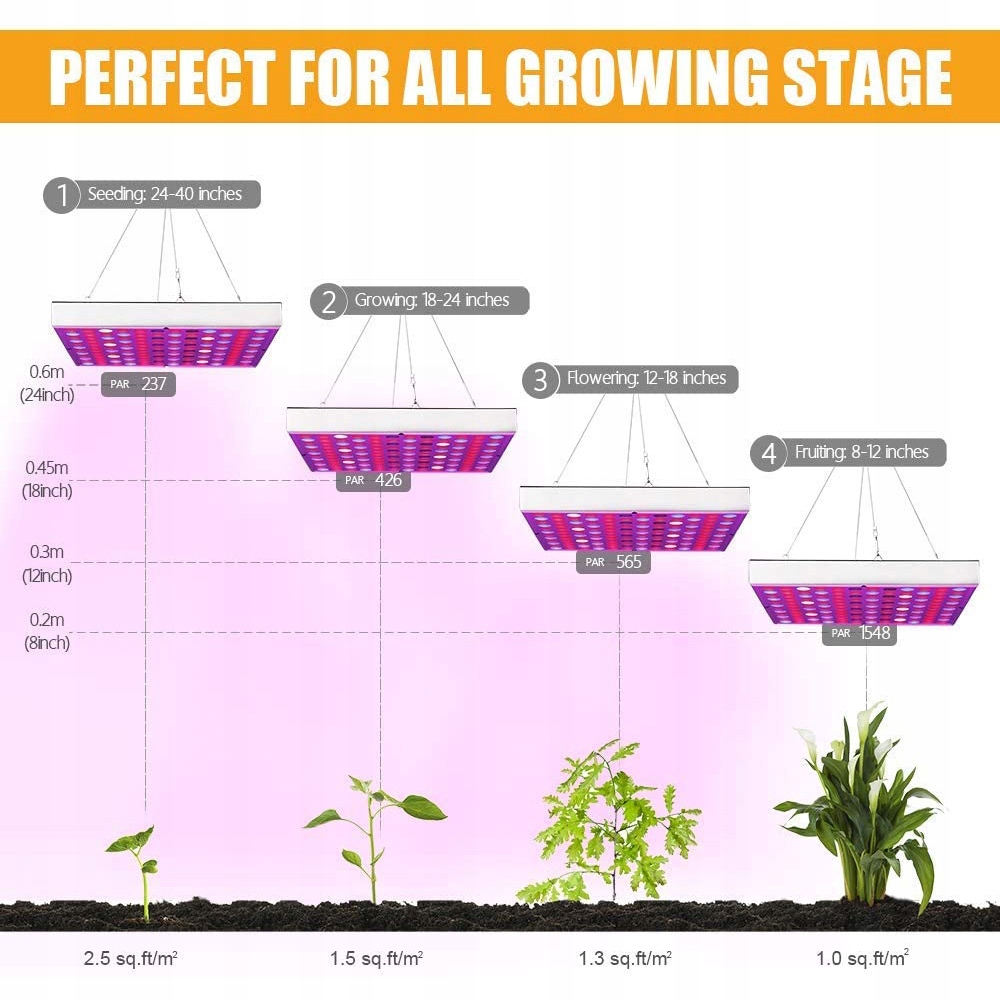 * ВЫСОКОКАЧЕСТВЕННЫЙ МАТЕРИАЛ: светильники для выращивания растений имеют хорошее рассеивание тепла и долговечность, отличный контроль тепла. Корпус из материала ABS гарантирует, что ваша световая панель будет более прочной и долговечной. Крышка осветительного растения высотой 2 фута, рекомендуется подвешивать на высоте примерно 8–30 дюймов.
