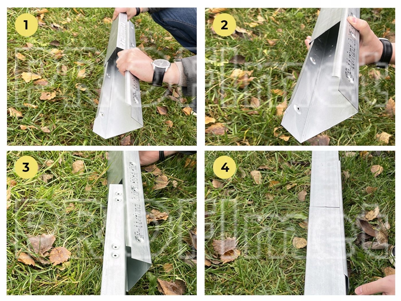 Фундамент изготовлен из оцинкованного металла П-образного прямоугольного сечения.