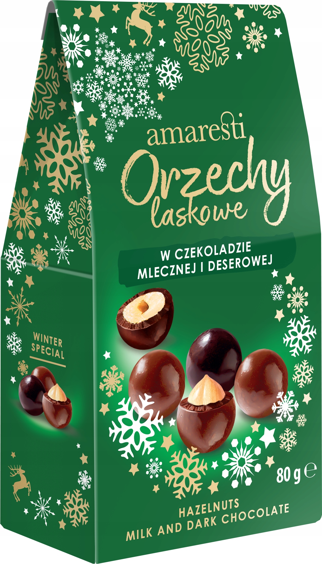 АМАРЕСТИ ЗИМА - Фундук в молочном и темном шоколаде - 80г