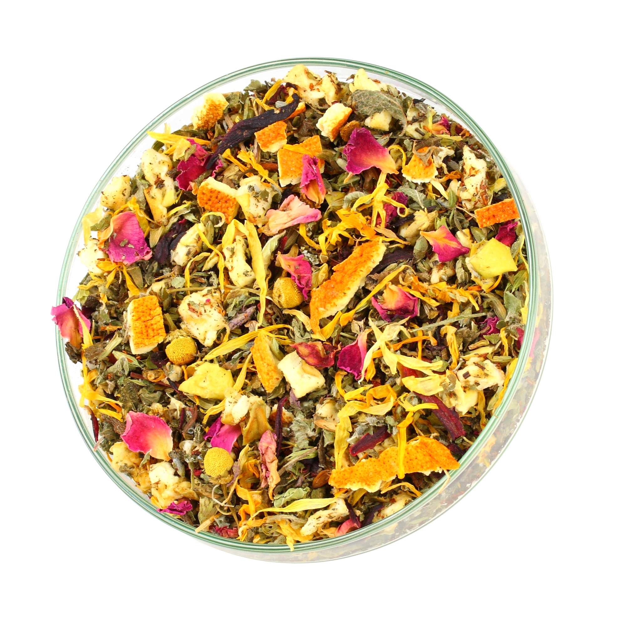 - Ройбуш средний, яблоко , лист мелиссы, гибискус, цедра апельсина, лист малины, мята перечная, календула, лаванда, лепестки розы, ромашка, ароматизатор.