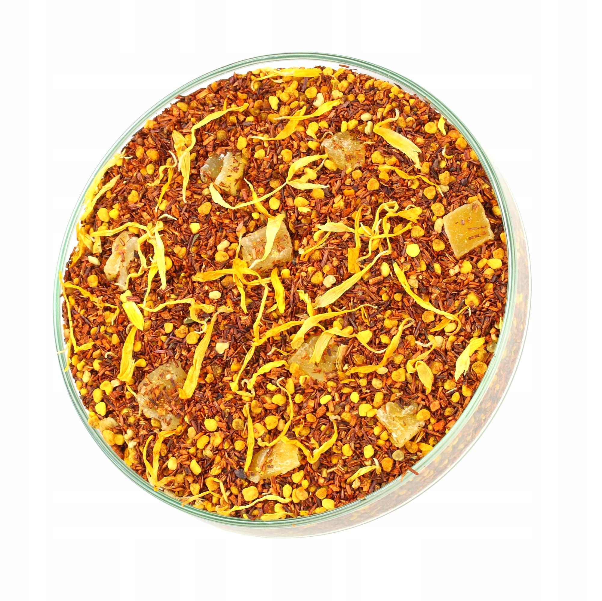 - Ройбуш, пыльца, манго-цукаты (манго, сахар, регулятор кислотности – лимонная кислота). кислота), дикий шафран, подсолнечник, ароматизатор.