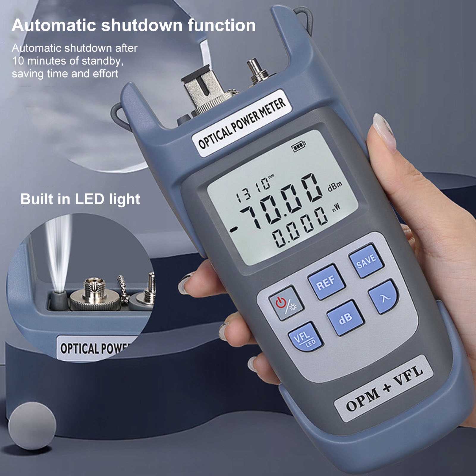 4. Легко носить с собой: этому измерителю оптической мощности не нужно ждать предварительного нагрева, просто подключи и работай, небольшой размер, легкий вес, легко носить с собой, но также со светодиодной подсветкой, очень практично.
