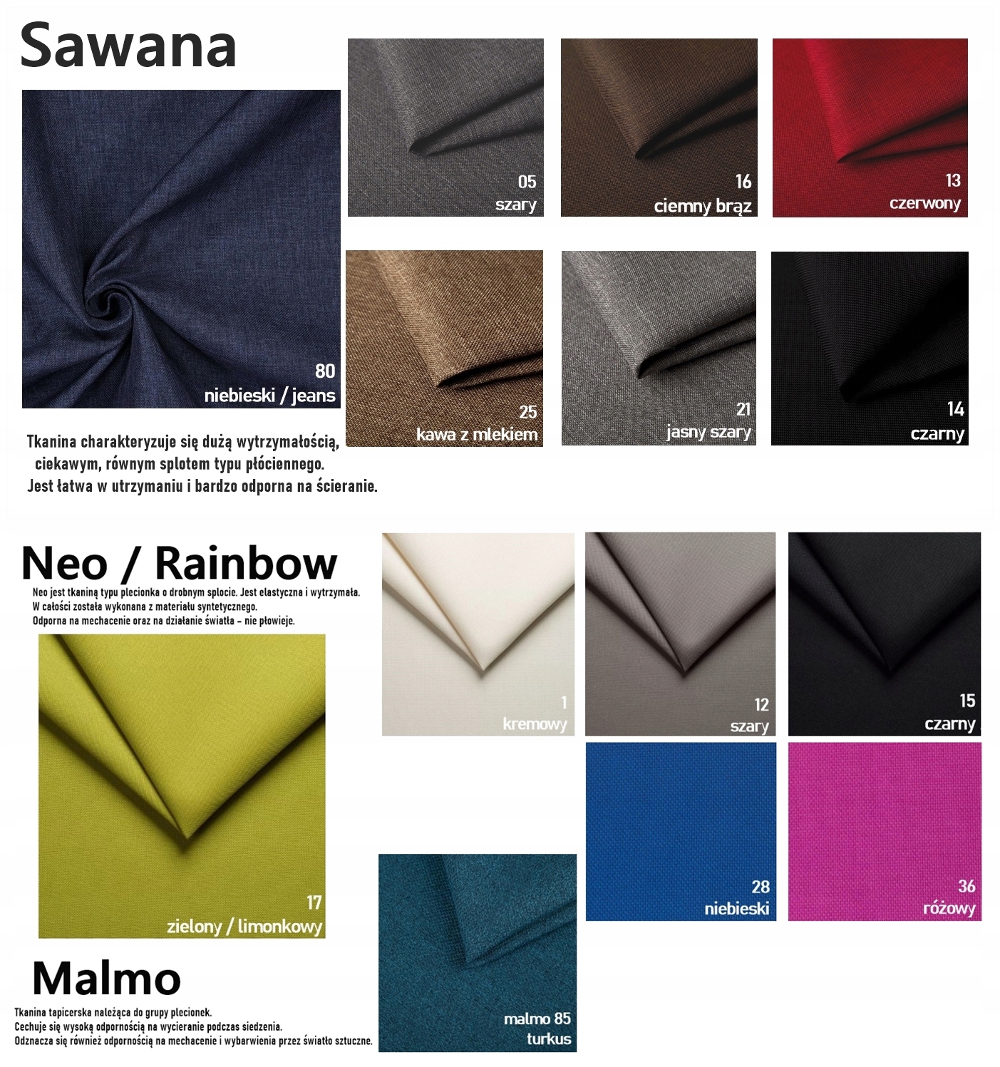 Стандартные цвета – используемые материалы: экокожа Sawana и Madrid