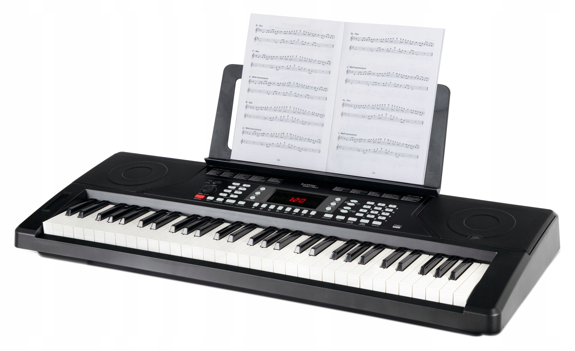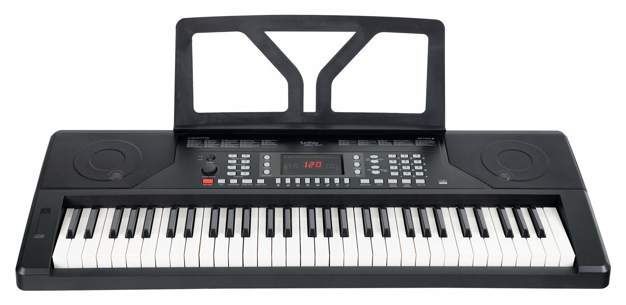 Клавиши с динамикой нажатия, 61 клавиша. Серия FunKey Edition с классическим, неподвластным времени и несложным дизайном предназначена для новичков, которые точно знают, чего хотят. Прибор оснащен клавиатурой с динамикой нажатия клавиш стандартного размера с 61 клавишей. В то же время, технически клавиатуры предлагают все, что новичок может ожидать от инструмента за свою цену. 300 звуков и ритмов гарантируют, что ваш вкус к индивидуально предпочитаемым стилям никогда не будет упущен. От акустического фортепиано до искаженной гитары, струнных, тенор-саксофона и многих других инструментов до ритмов соула, танцев, шаффла и самбы. FunKey Edition предлагает поистине широкий спектр музыкальных возможностей. Кроме того, вы можете использовать такие эффекты, как сустейн и вибрато, воспроизводить два выбранных звука одновременно с помощью функции Dual Voice или добавлять в игру дополнительные элементы.