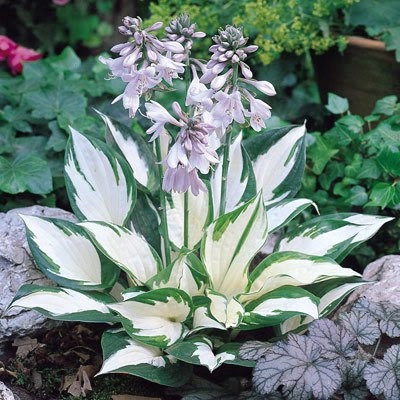 Средний раститель. Он растет медленно и создает приятный скан, который состоит из двухцветных зеленых и белых листьев. Однако это заслуживает внимания не только из-за листьев, но и цветов, которые появляются летом (июнь-август). Они легкие фиолетовые, у них есть форма колоколов