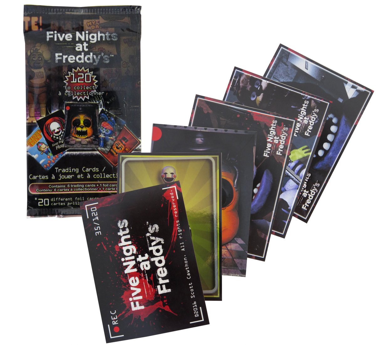 В комплект с фигуркой входит упаковка, содержащая 7 штук оригинальных коллекционных карточек Five Nights at Freddy's.