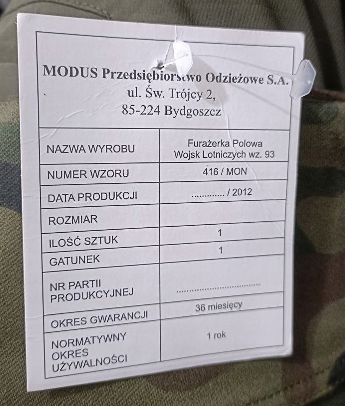 Просматривая «FURAŻERKA POLOWA WOJSK LOTNICZYCH WP 416/MON R:55», вы можете быть уверены, что данный товар из каталога «[rubrica_name]» будет доставлен из Польши и проверен на целостность. В цене товара, указанной на сайте, учтена доставка из Польши. Внимание!!! Товары для Евросоюза, согласно законодательству стран Евросоюза, могут отличаться упаковкой или наполнением.