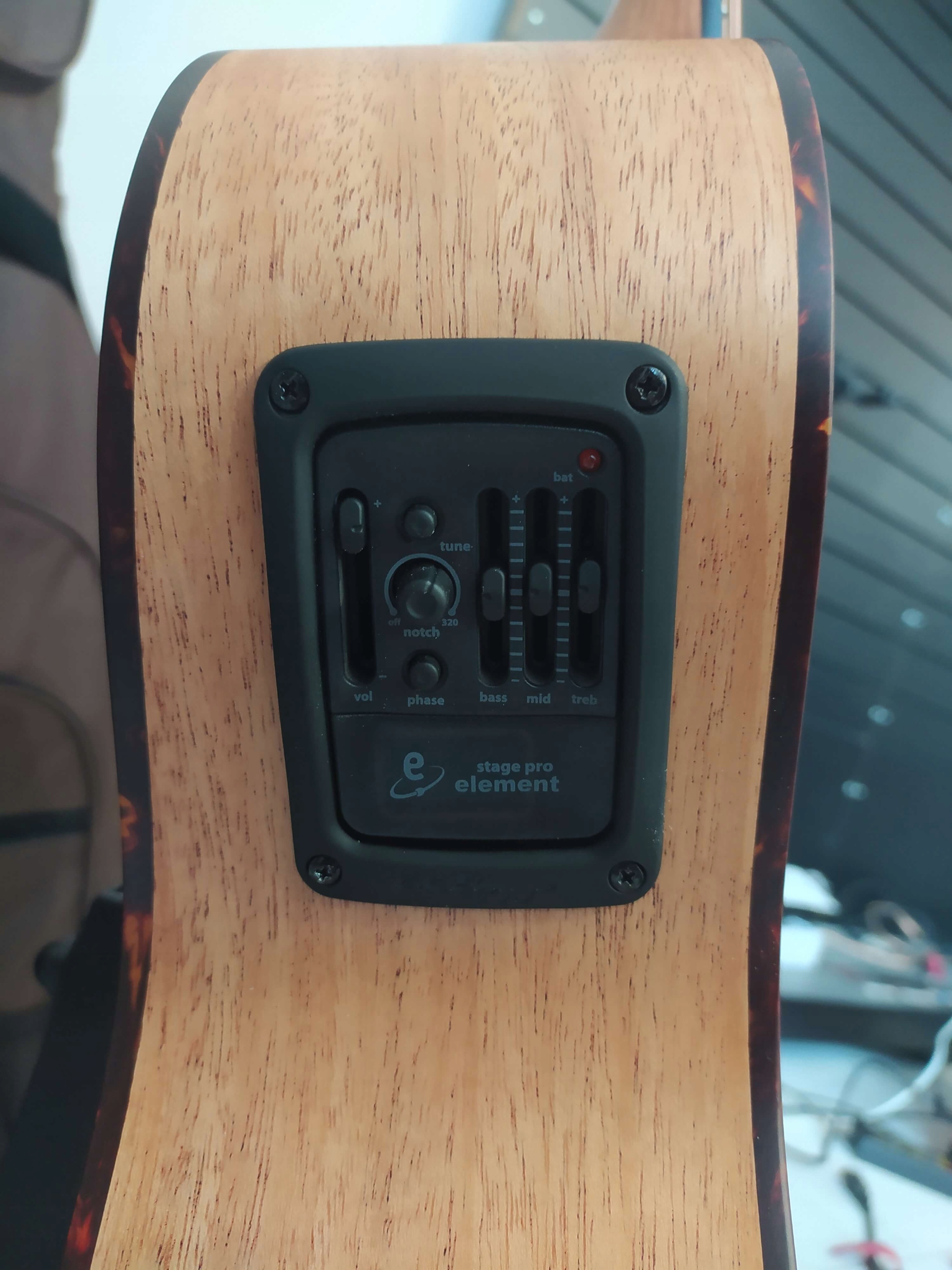 LR Baggs Stage Pro Element — одна из самых интересных гитарных звуковых систем, основанная на высококачественном предусилителе и пьезоэлектрическом звукоснимателе. Что отличает SPE от пьезопреобразователей других компаний, так это запатентованный датчик Element. С виду обычный звукосниматель, но он отличается от всех остальных тем, что активен по всей длине - то есть за прием звука отвечает не только часть, расположенная под стойкой, которая собирает вибрации непосредственно из-под струн, но и часть, установленная внутри. корпус гитары между мостом и предусилителем. Это действие представляет собой своеобразную имитацию микрофона, смягчающую звук преобразователя. Встроенный предусилитель Stage Pro — это устройство класса А, большим преимуществом которого является низкий уровень шума, обеспечивающий чрезвычайно теплый и приятный звук. Предварительный усилитель Stagepro Element имеет трехканальный эквалайзер высоких, средних и низких частот, режекторный фильтр с технологией Garrett Null, переключатель фазовой инверсии, хроматический тюнер, индикатор заряда аккумулятора и быстрый доступ к замена батарейки.