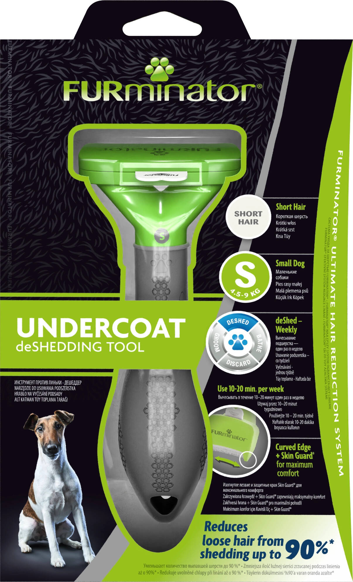 Furminator® Инструмент для удаления нижнего шар для коротких мелких пород (ы). Инструмент, разработанный специально для собак с весом тела 4,5-9 кг, с мехом короче 5 см. Продукт был разработан для содействия здоровой коже и волосам в домашних животных и значительно уменьшить количество волос, которые животное теряет и распространяется по дому каждый день. Это позволяет эффективно удалять нижнюю часть и мертвые волосы, уменьшая подкладку до 99%. Проскавшие края предотвращают раздражение кожи и защищают устройство при хранении благодаря технологии Edge Guard. Простой в использовании. Интуитивная чистка