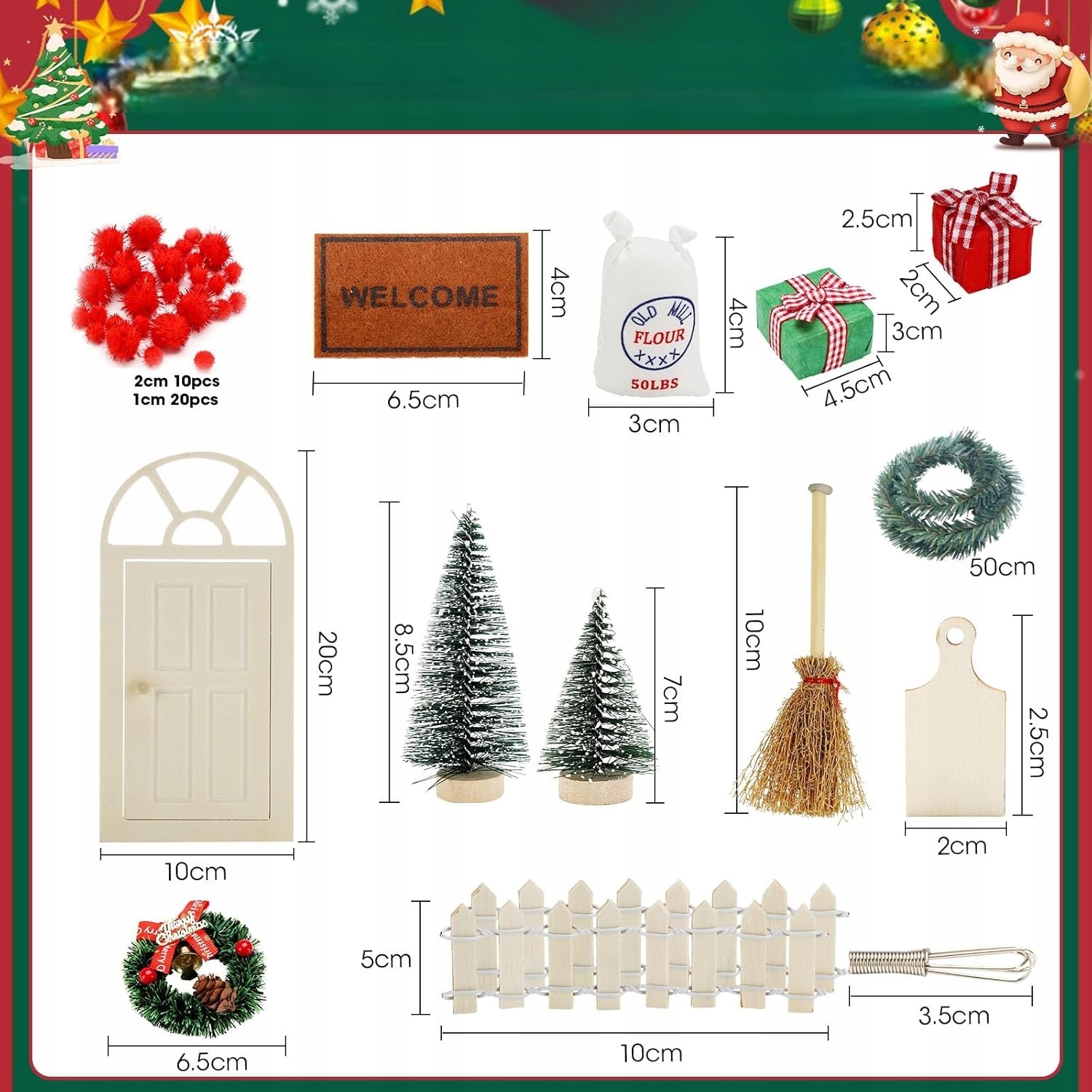 Все наши дверные комплекты легко собрать: мини-заборчики, мини-елочки, мини-почтовый ящик, мини-подарочная коробка, лестница, коврик, гирлянда и т. д., которые можно повесить низко на стене или высоко на полке или в другом секретном месте в вашем доме.