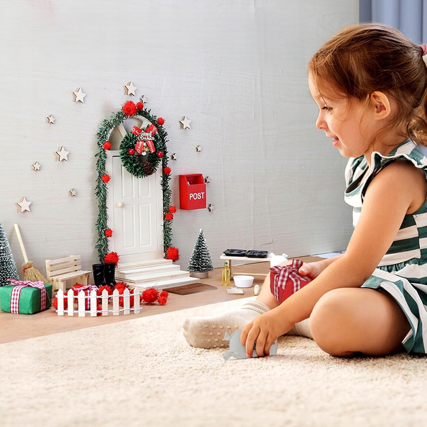 Красивый и очаровательный набор дверных аксессуаров ELF для модных и талантливых маленьких девочек и мальчиков, который добавит немного сказочного очарования вашему рождественскому украшению. Оригинальный дизайн миниатюрных деревянных сказочных дверей, мини-гирлянды, мини-масляные лампы, мини-обувь и другие мини-аксессуары эксклюзивны, реалистичны и красочны.