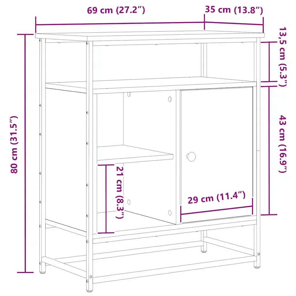 • Элегантные детали: Матовые черные ручки и распашные дверцы придают этому буфету стиль. Прочные стальные ножки и черный каркас не только хорошо выглядят, но также обеспечивают устойчивость и элегантность.