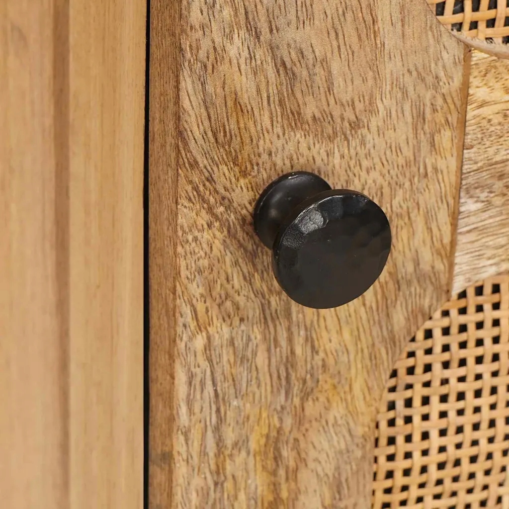 - Материалы: Изготовлен из массива манго, что обеспечивает долговечность и эстетику. Дерево придает естественную теплоту, а деревянные элементы делают фуршет легким, но прочным. Оба материала гарантируют долговечность и простоту ухода.
