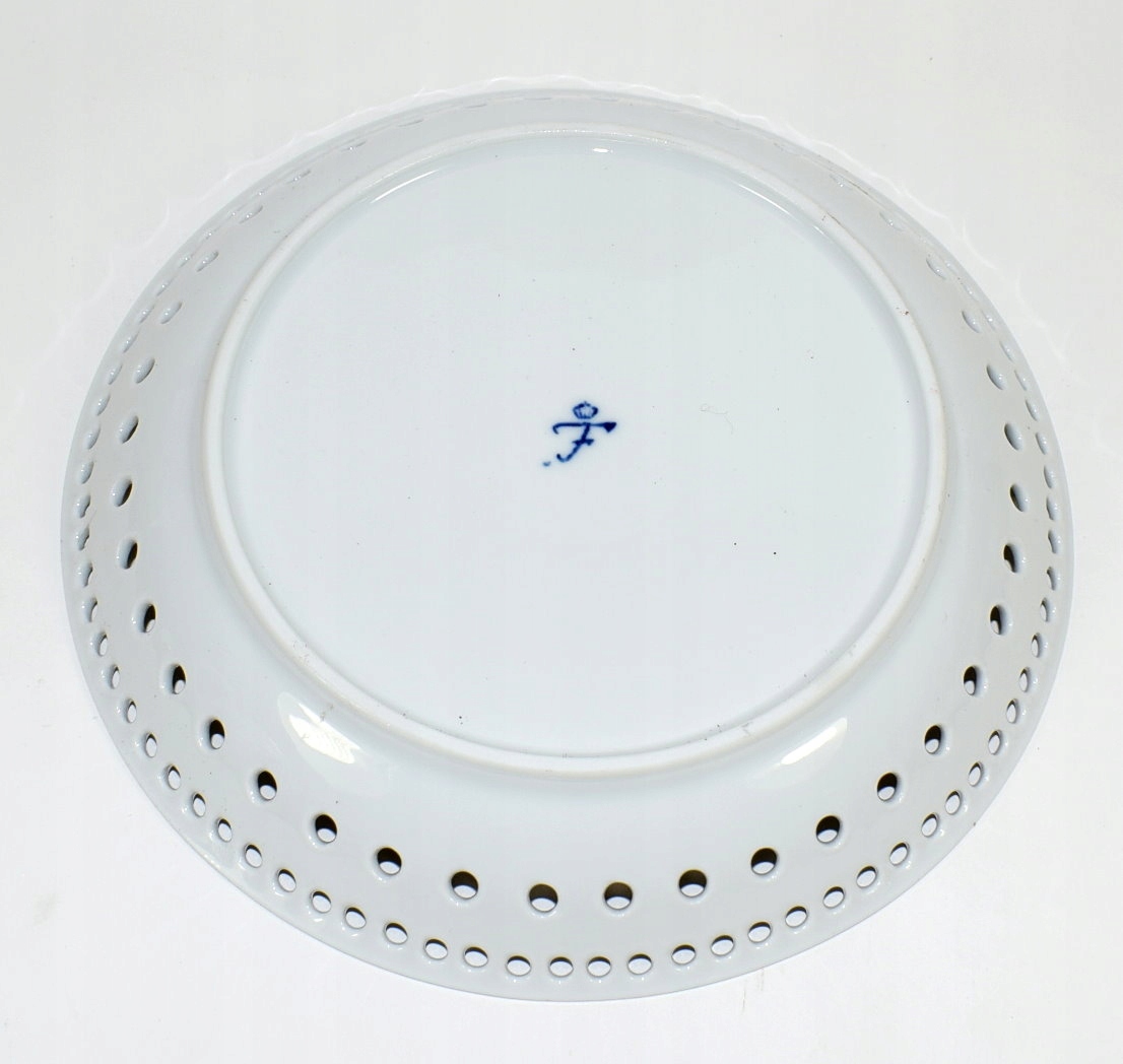 Красивая, очень эффектная тарелка с ажурным, рельефным краем. Это очень элегантное изделие, украшенное кобальтом по краям. Подпись Фюрстенберг-Ипол 20 век.