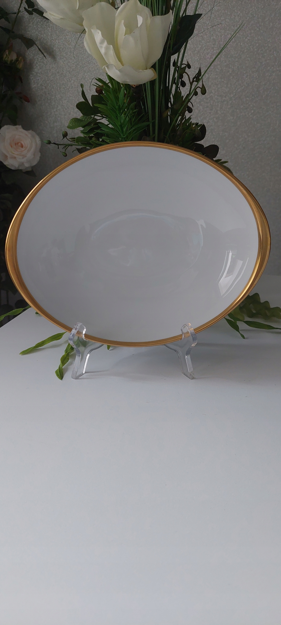 Белая Патера, богато позолоченная с высотой размеров 5 см, длина 25 см, ширина 19 см.