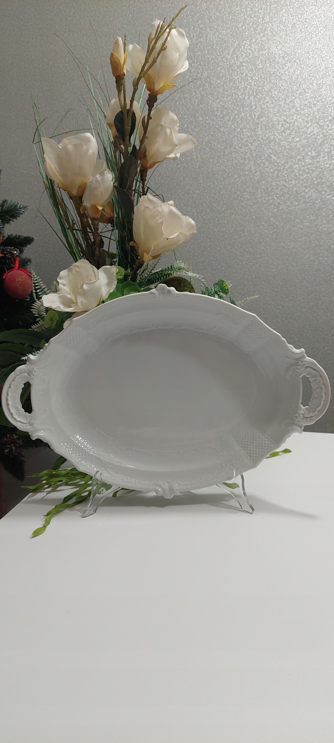 Патера, лоток Фюрстенберга в белом 35 см длиной 24 см в ширину. Маленькие фарфоровые особенности.