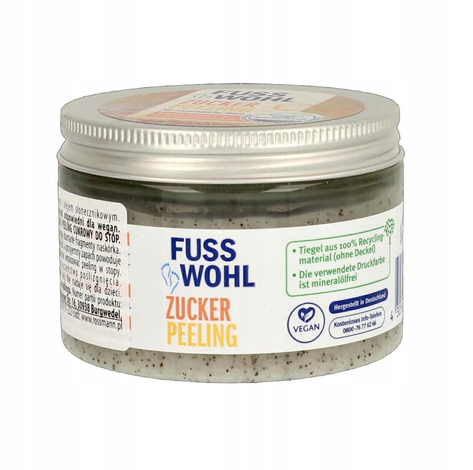 Сахарный пилинг для ног Fusswohl, 150 мл/ С маслом какао и подсолнечным маслом.