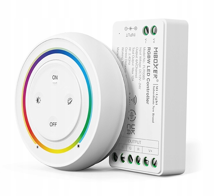 Модель Fun038S является последней версией контроллера Miboxer для светодиодных полос RGBW с напряжением 12V-24V. Снижение измерений, повышенная мощность и способность изменить частоту модуляции ШИМ означает, что в настоящее время это непревзойденное и без проблем решения этого типа на соотношении. Светодиодные ленты и позволяют им включить/выключить, плавная регулировка интенсивности света и изменение цвета ленты RGBW (с дополнительным белым). , с напряжением 12 В, не должно превышать 144 Вт (288 Вт (288 Вт при 24 В). В противном случае набор освещения должен быть расширен с помощью дополнительных усилителей. выполняется с использованием радиоволн RF, что позволяет непрерывной эксплуатации многих устройств в одной комнате. Эффективный диапазон в открытом пространстве составляет до 30 м