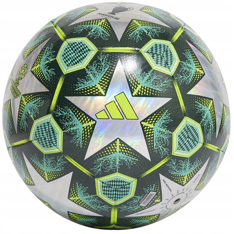 Тренировочный мяч adidas зеленого цвета, характерного для мюнхенских медных куполов и фонов открыток, вдохновлен дизайном официального мяча Лиги чемпионов УЕФА. Сшитая на машинке оболочка из ТПУ идеально подходит для интенсивных тренировок и украшена замысловатыми деталями, отсылающими к логотипу города и турнира. Особый эффект голограммы придает всему изделию неповторимый вид.