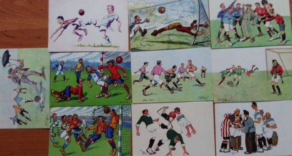 Условие: очень хорошо Описание: коллекция открыток - футбол для развлечения. Уникальная коллекция из десяти картин, опубликованных Музеем спорта и туризма в Варшаве в 2012 году. Открытки касаются футбольного периода 1911 - 1939 года. Создатели рисунков изображают футбольный мир в сатирическом, кривом зеркале. Публикация содержит краткое описание истории футбола.